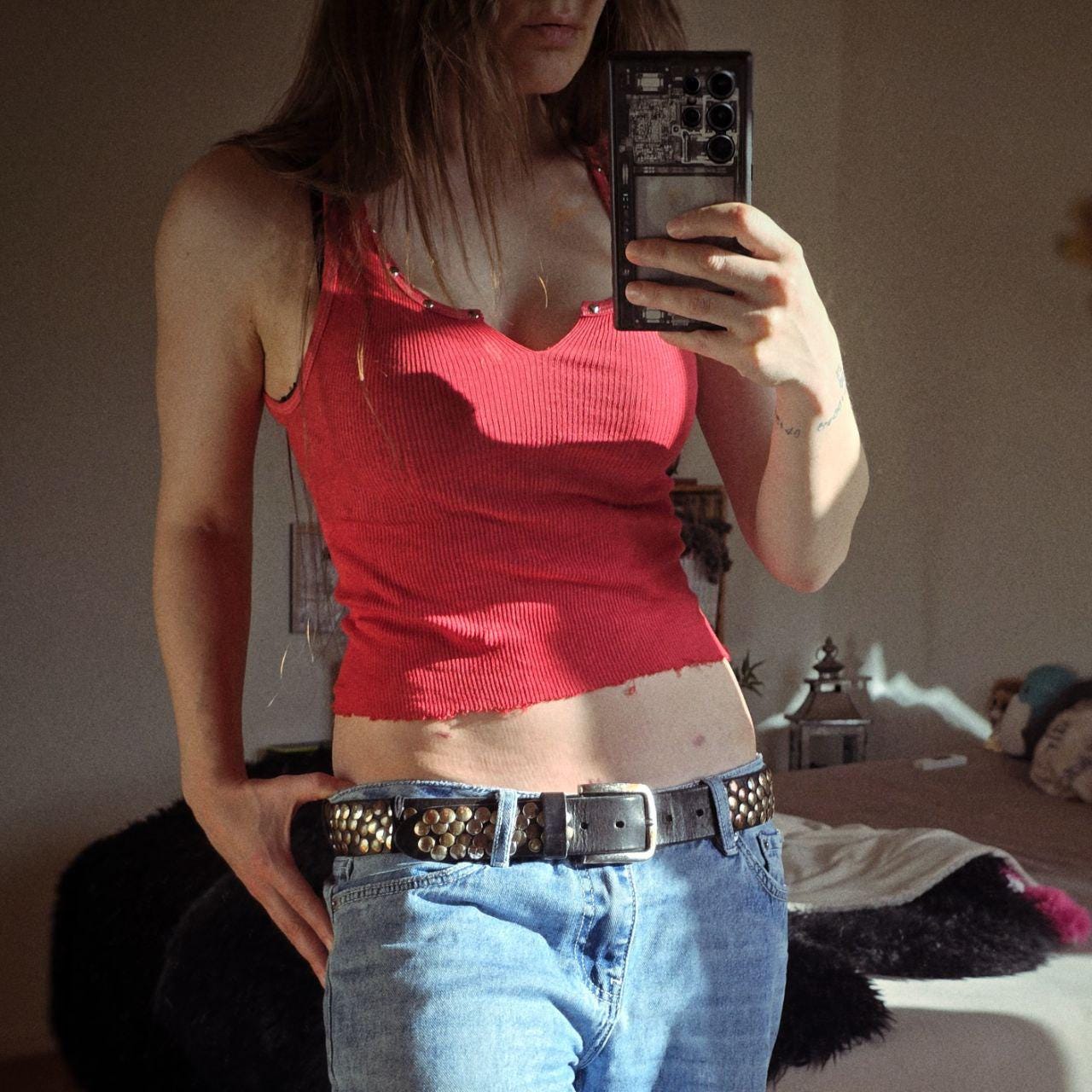 All tanks will have a ripped hem, slightly cropped and signs of wears. Leave us a note to fully crop or to leave it long!
