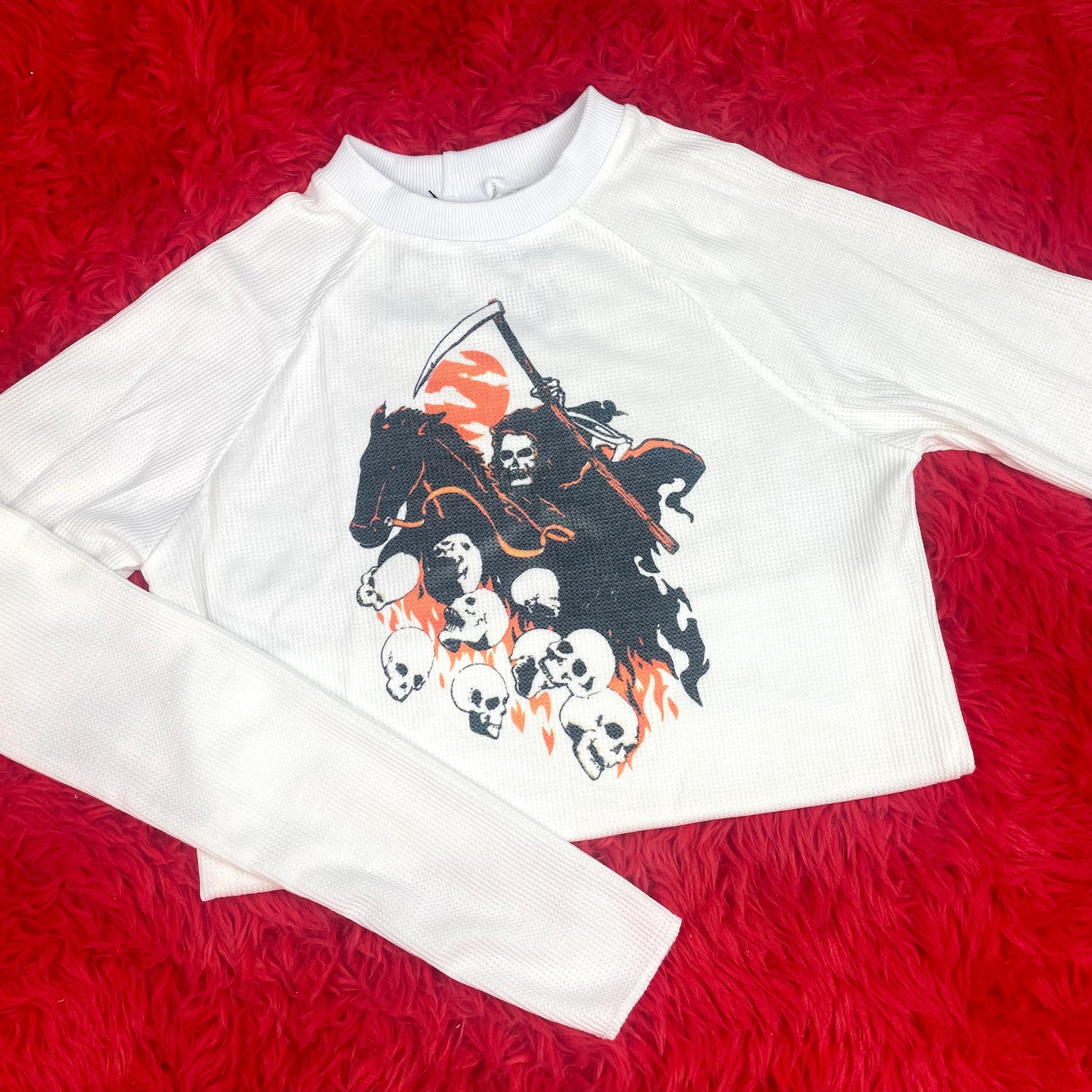 Bitchin’ new waffle knit thermals sewn and printed in-house by Hot Honey Vtg, all thermals are made to order and will ship in 1-2 weeks.