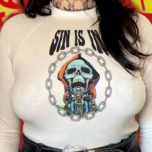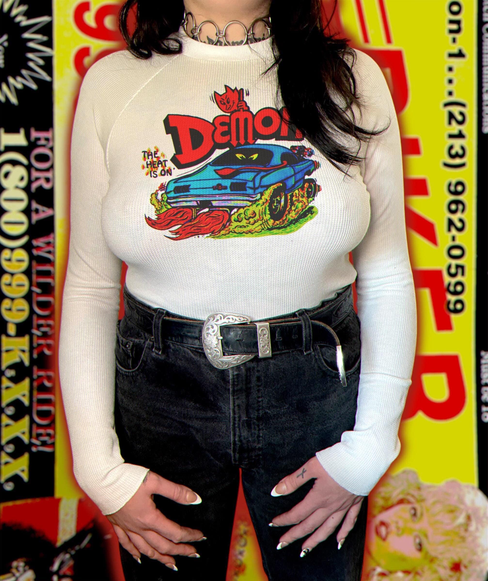 Bitchin’ new waffle knit thermals sewn and printed in-house by Hot Honey Vtg, all thermals are made to order and will ship in 1-2 weeks.