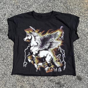 Vintage 1980-2000’s transfers professionally applied to modern shirts. Due to age, graphic application may vary.