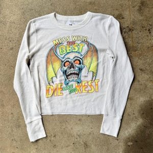 Vintage 1980-2000’s transfers professionally applied to modern shirts. Due to age, graphic application may vary.