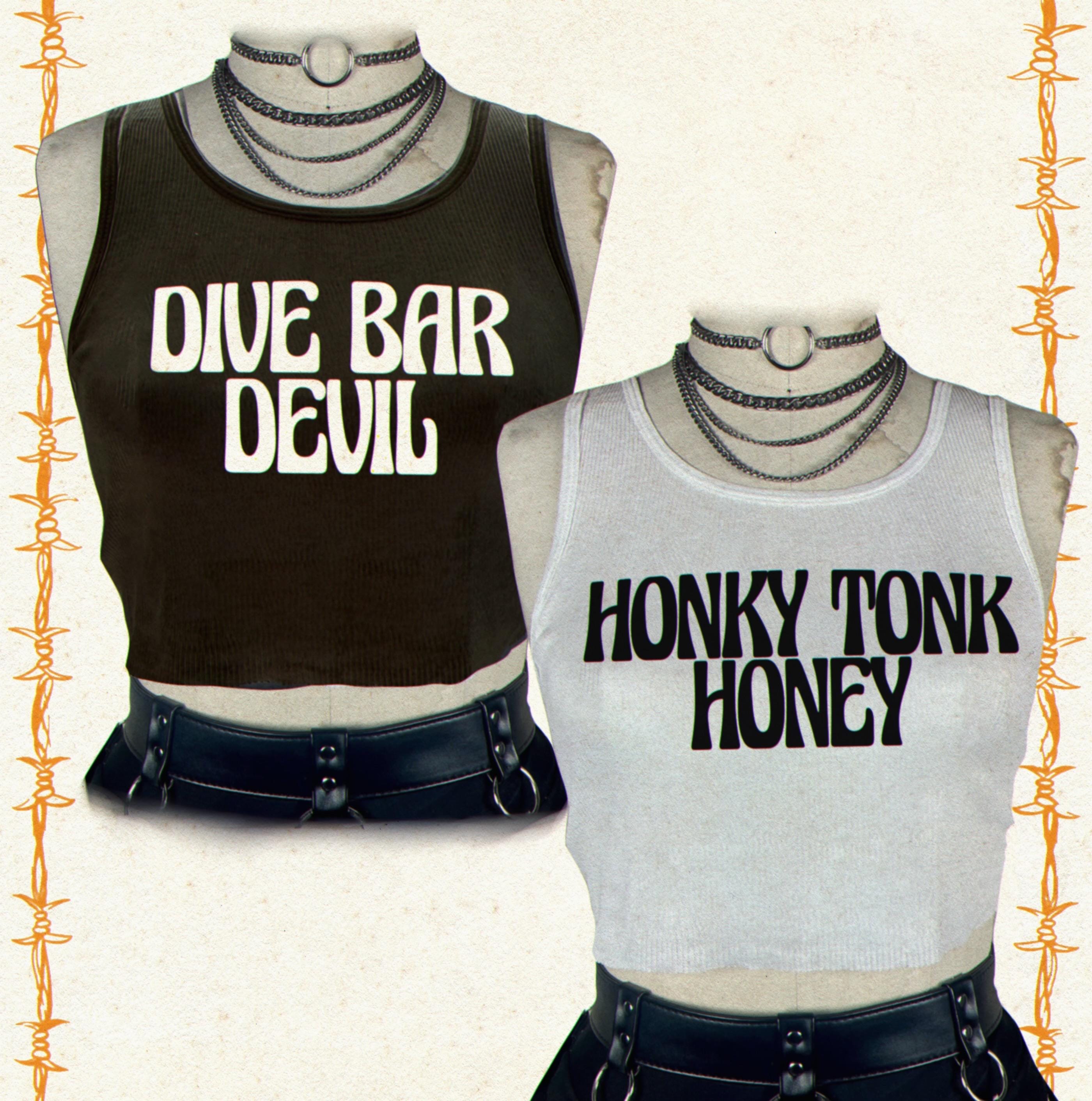 Ribbed tank with a DIVE BAR DEVIL handpressed original graphic inspired by 70’s & 80’s bikers.